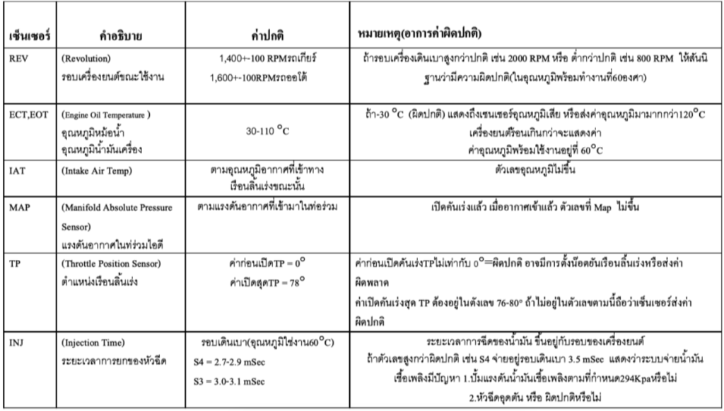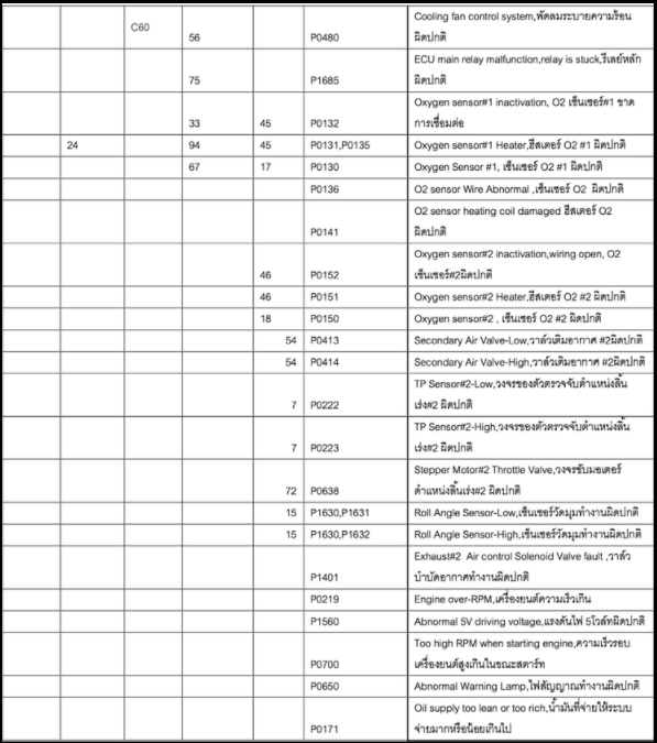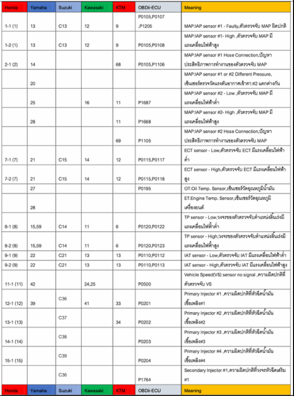 นี้เป็นอีกตัวที่จะบอกถึง การสั่งงานและการทำงานของกล่องECMที่ได้สั่งงานไปยัง เซ็นเซอร์ต่างๆ เพื่อบอกความผิดปกติ ต่างๆของรถจักรยานยนต์