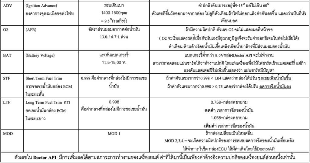 คำเตือน ต้วเลขในตารางนี้เป็นแค่ ตัวที่เก็บจากรถHonda wave110 ใช้เทียบเพื่อหาความแตกต่าง ได้บางตัวเลข อ่านรายละเอียด ให้เข้าใจ เพิ่มเติม